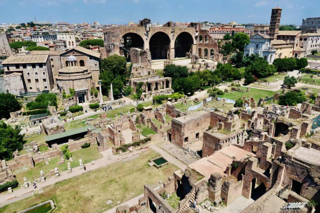 On the opposite side of the hill you will find the Foro Romano or Ancient Roman Forum, one of my favorite places in Rome. Also known as the Forum Romanum, it is one of the most important archaeological sites in Rome. Located in the heart of the city, the Roman Forum was the political, economic, and social center of ancient Rome, and was the site of many important events in the city’s history.