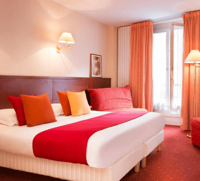 This charming hotel is built into a 17th century residence, so you really get a feel for the history of the city while staying here. It has been an hotel for over a century, and features stone walls, historic statues, and exposed beams. This hotel is located right in the heart of the city, and is close to such attractions as the Musée d’Orsay and Jardin des Tuileries. The rooms are both comfortable and clean, although they may be on the smaller side.