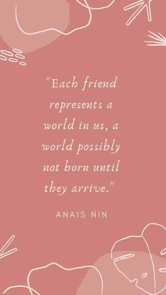 46. “Each friend represents a world in us, a world possibly not born until they arrive.” – Anais Nin