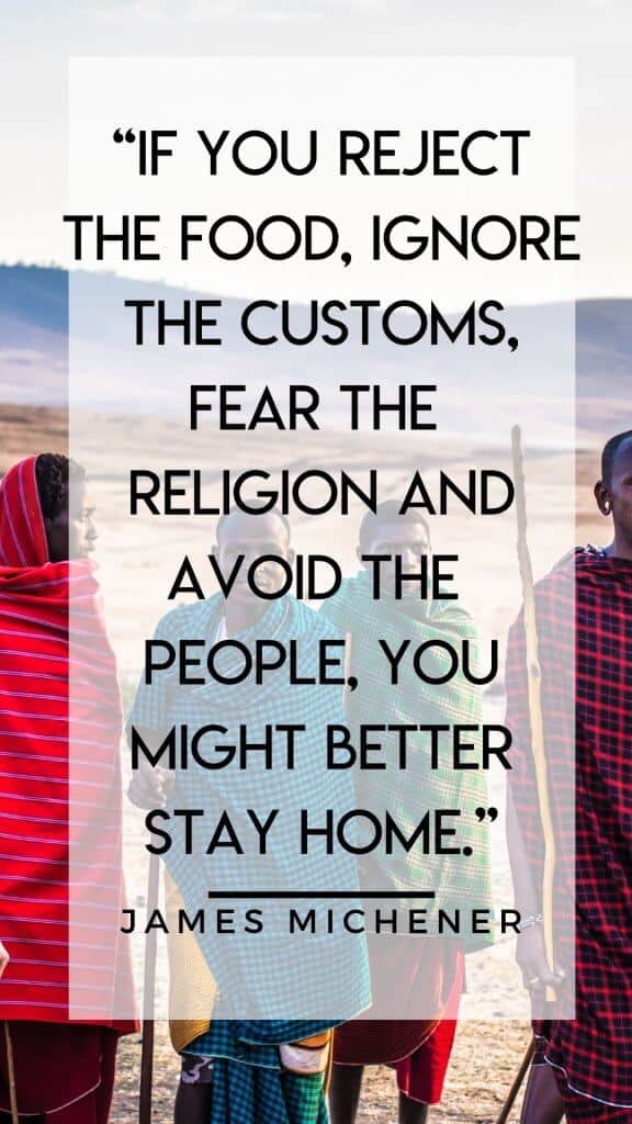 7. “If you reject the food, ignore the customs, fear the religion, and avoid the people, you might better stay at home.” – James Michener