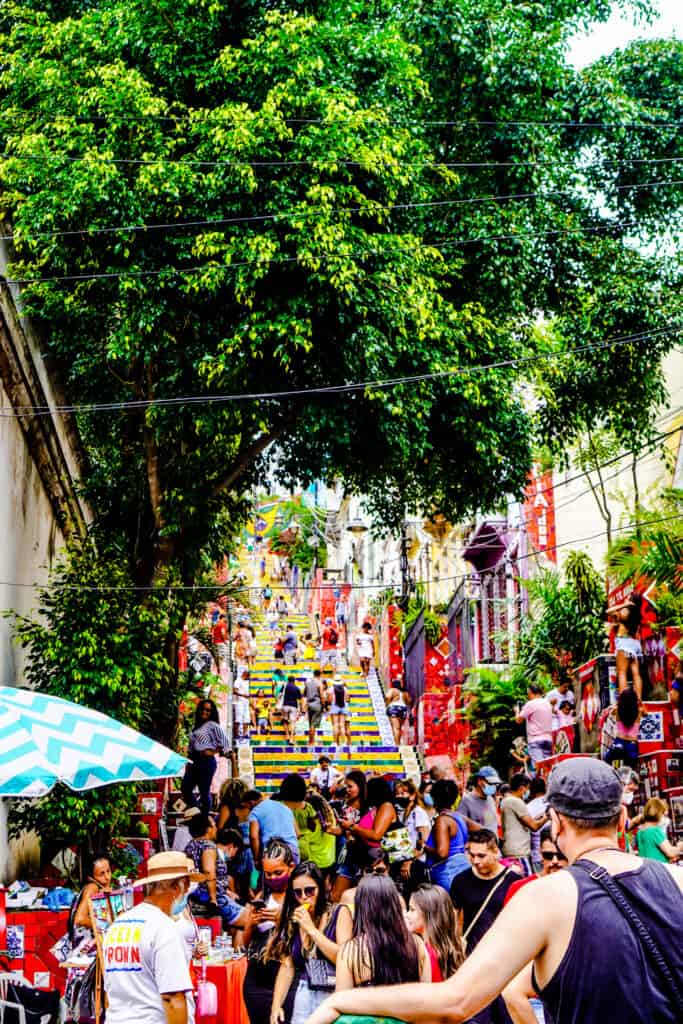 The stairs are located between the Lapa and Santa Teresa neighborhoods, which feature more heavily later in this itinerary. These steps are great for a photo opp – but I’ll caution that its MUCH better to visit this in the morning, as they will be full of other tourists later in the day.