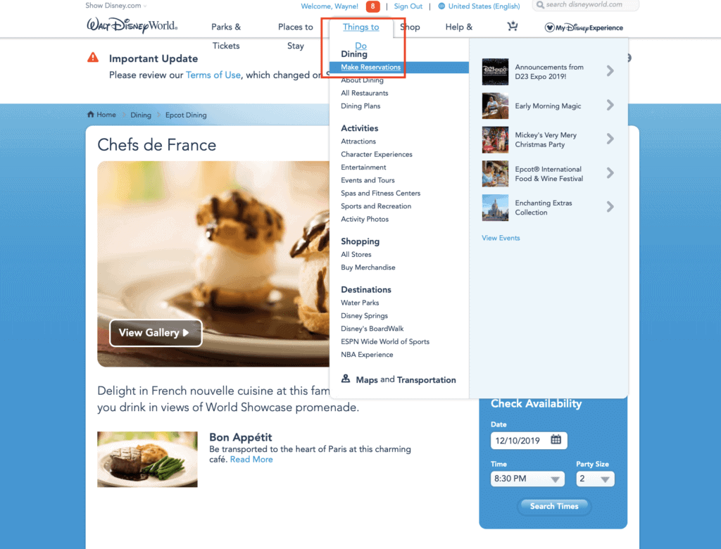 From the website, you’ll click the “Make Reservations” option as shown below: