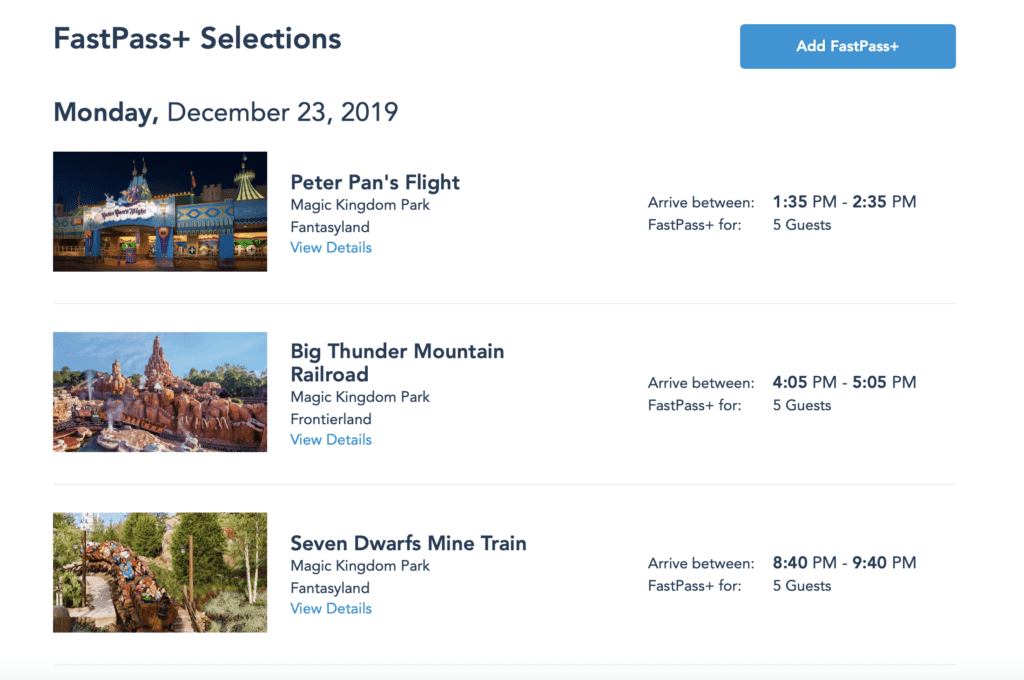 The FastPass + is a great tool to saving time in the parks. As an overview, you can pre-book to essentially cut the lines for three rides/experiences in a single park for each day of your trip. If you’re not familiar with the steps to using FastPass +, then see the steps below: