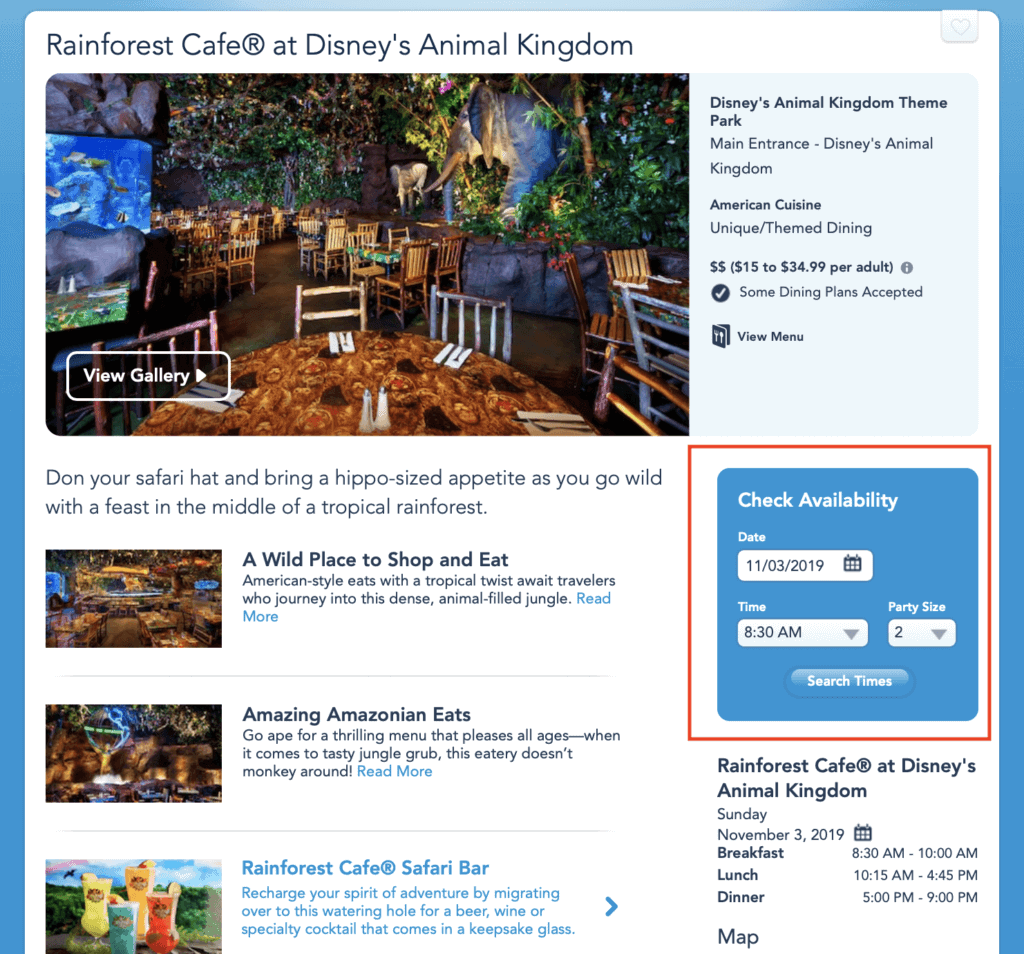 Once you get to the restaurant you’d like to book, just add in details on the date, time, and party size. From there you’ll enter credit card information and you should be all set!