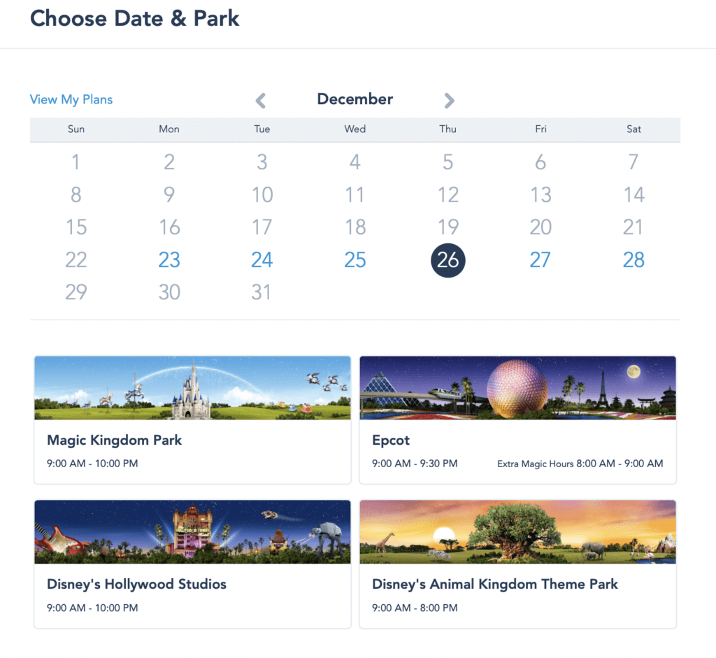 You don’t have to actually do this in advance, but your park schedule will be dependant upon 1) the dates of your dining reservations and 2) the timing of your FastPasses. If you book early, you will really have no issues with going to the parks on your desired dates. This will be even more true if you decide to visit the parks during the holidays. If you’re using the