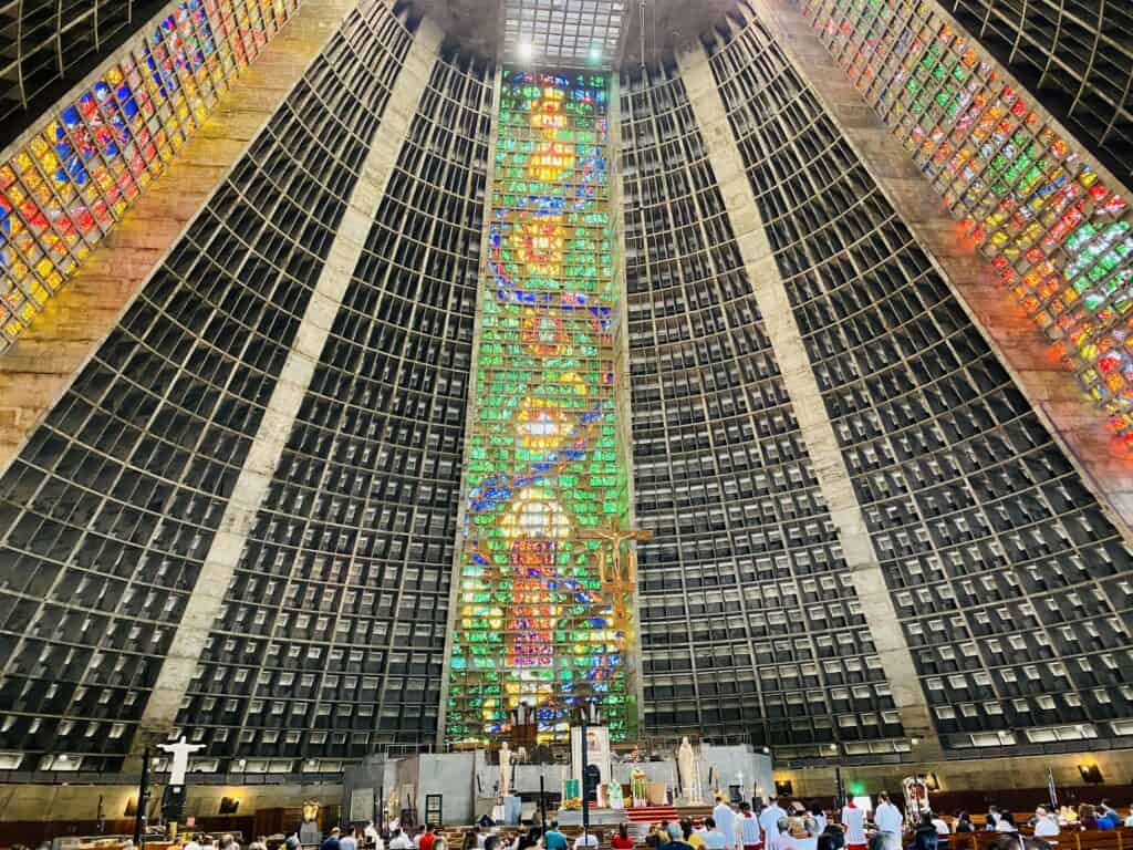 Metropolitan Cathedral of Saint Sebastian: Also known as the Rio de Janeiro Cathedral, this cathedral is a remarkable architectural masterpiece that stands as an emblem of faith in Rio. Designed by Edgar Fonseca and constructed between 1964 and 1979, the cathedral’s unique modernist design is inspired by Mayan pyramids, featuring a conical shape and striking stained glass windows.