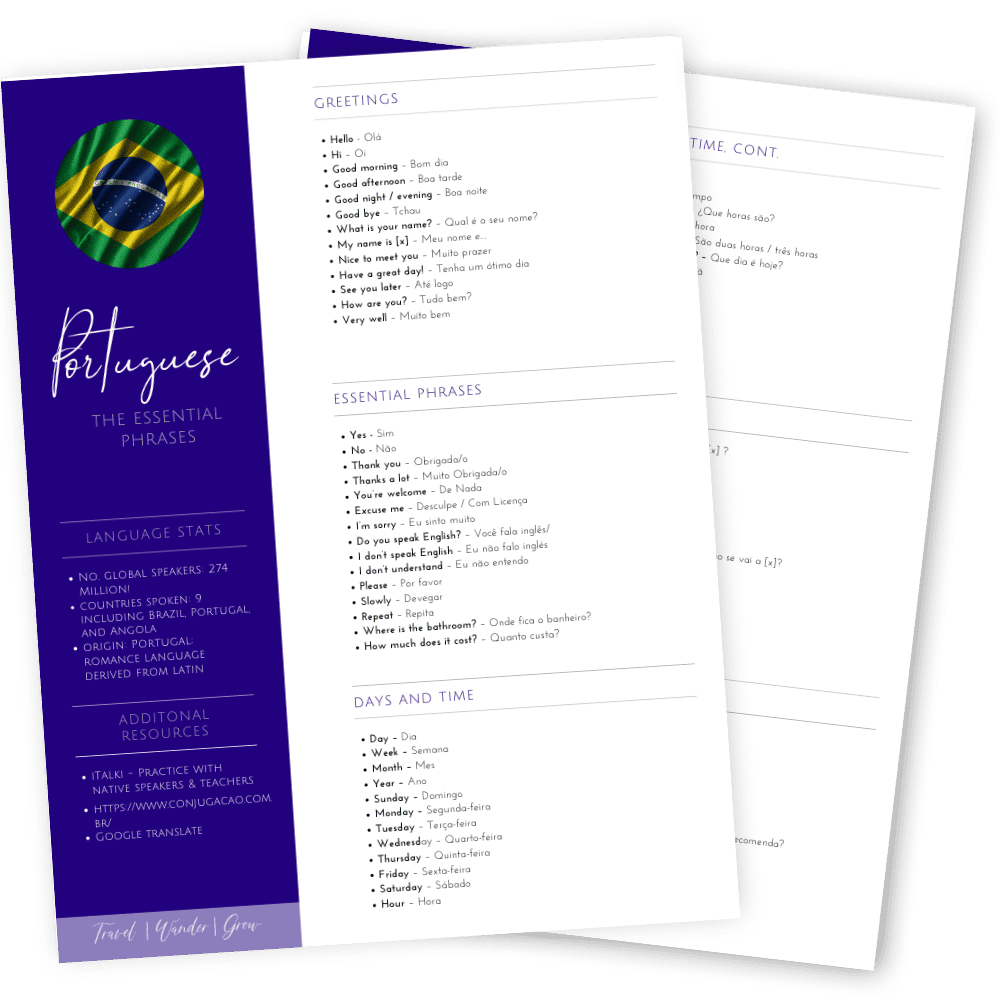 This free download includes all the key Portuguese phrases that you will need for your travels to Brazil, Portugal, and other Portuguese-speaking countries. In addition, get details on the best resources to improve your speaking and listening skills as well.