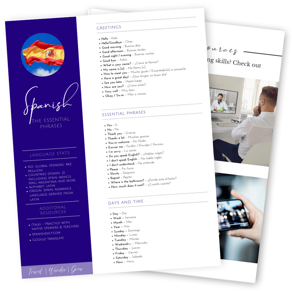 That completes my list of the basic Spanish phrases for travel! I hope that this list serves as a useful guide when you venture out to any of the 21 countries where Spanish is the official language! To get the most out of this list, you should practice often before taking your trip.