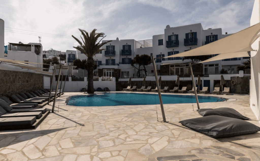 The Myconian Inn is situated right in the heart of Mykonos Town, and blends right in with the beautiful decor of the town. It comes highly rated, with an average score of 9.2/10.